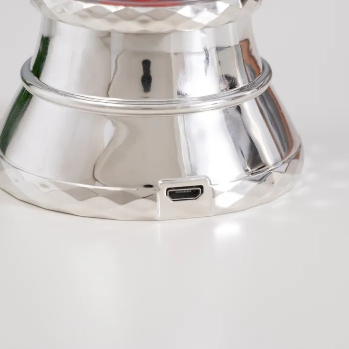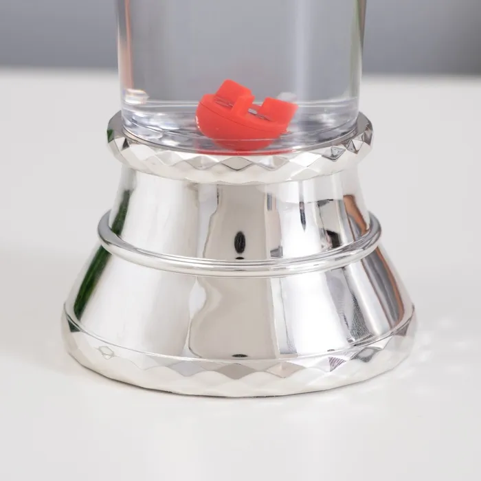 - Привлекательный дизайн: Серебристое основание и прозрачный конусный плафон напоминают снежную лаву, создавая уютную праздничную атмосферу.