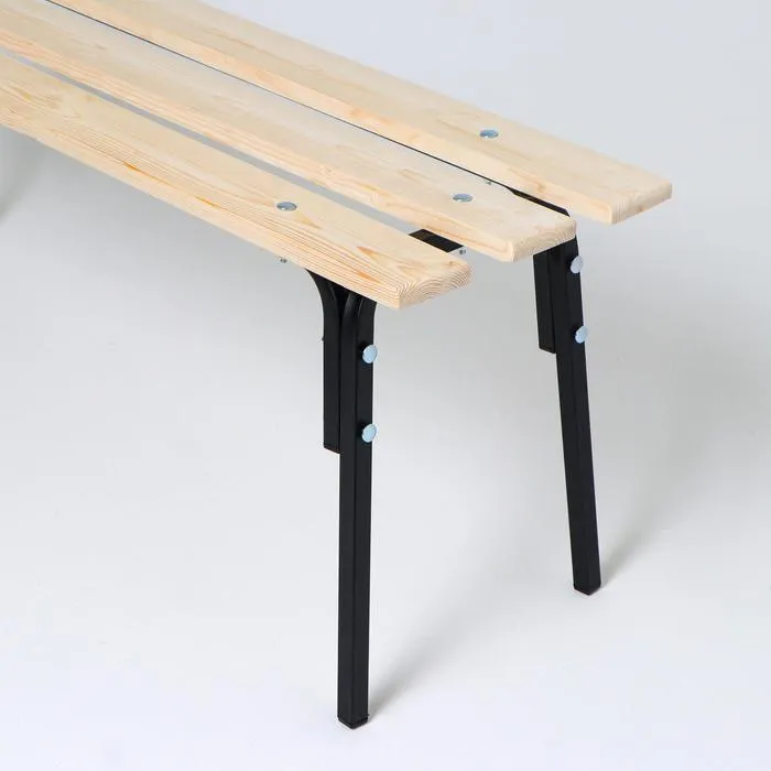 Каркас изготовлен из качественного стального профиля, покрытого порошковой краской. Все поверхности изготовлены из древесины хвойных пород.