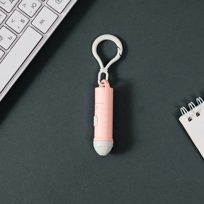 Лазерная указка брелок для ключей на карабине «Нежно-розовая», пластик, LR44×3 шт., 1.6×1.6×6.5 см — Характеристики
