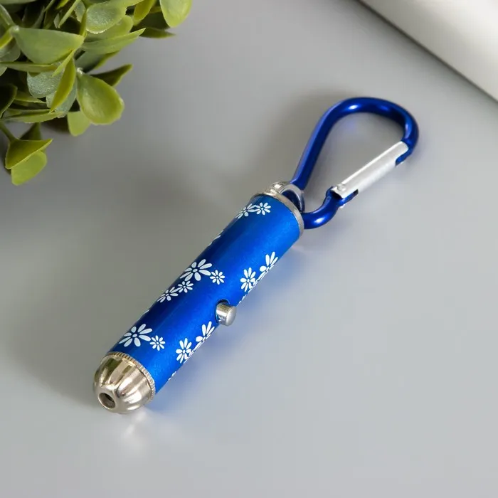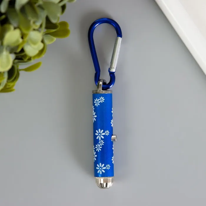 Лазерная указка брелок для ключей на карабине «Синий. Цветы», металл, светит с рисунком, LR44×3 шт., 1.5×1.5×7 см — Характеристики