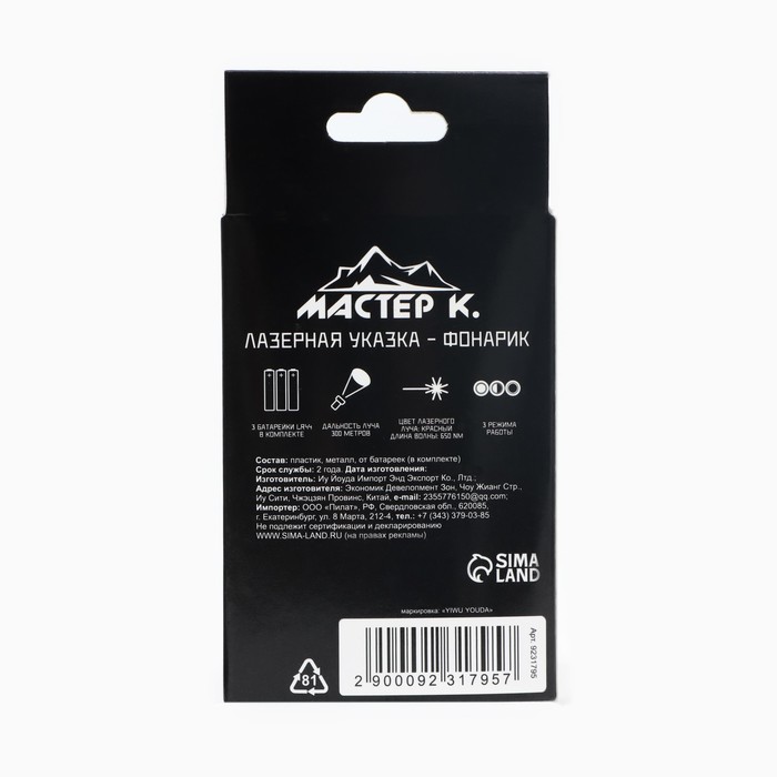 Лазерная указка – это универсальное устройство 2 в 1, которое станет отличным дополнением к арсеналу аксессуаров для вашего питомца. Эта лазерная указка не только служит в качестве забавной игрушки-дразнилки, но и выполняет функции светодиодного фонарика. С дальностью свечения до 300 метров, лазерная указка идеально подходит для активных игр с вашими питомцами, стимулируя их к движению. Светодиодный фонарь, встроенный в указку, незаменим в ситуациях с недостаточным освещением – будь то прогулка в деревне или лесу, внезапное отключение света дома или ремонт автомобиля на дороге. Компактный и стильный корпус с брелочком позволяет использовать лазерную указку как брелок для ключей или легко переносить ее в кармане или сумке.