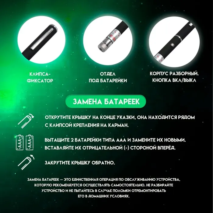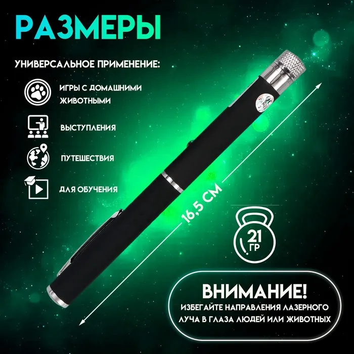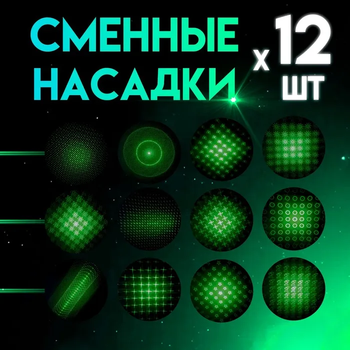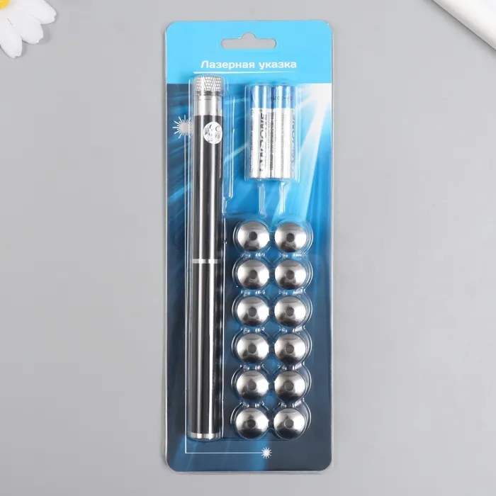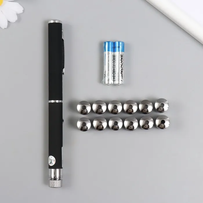 Лазерная указка с насадками: 12 + 1, от 2×ААА, 7.7×21 см — Характеристики
