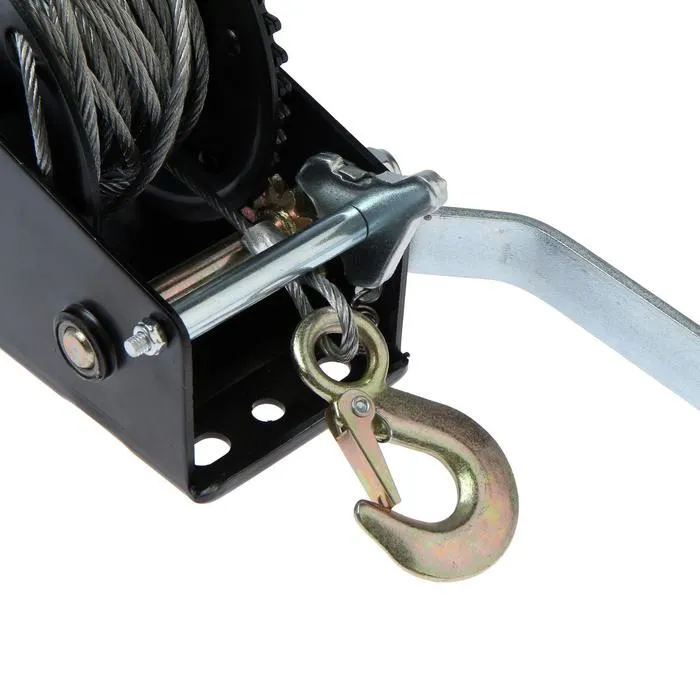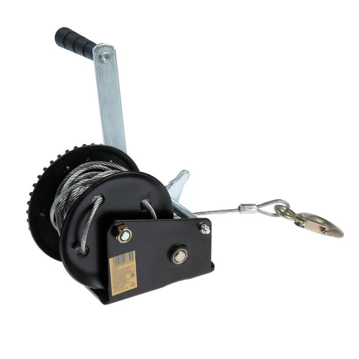 Барабанная лебёдка проста в эксплуатации: её конструкция, в основе которой барабан, крепится к прочному горизонтальному упору, а трос — к грузу. Вращая ручку, вы можете подтянуть необходимый объект.