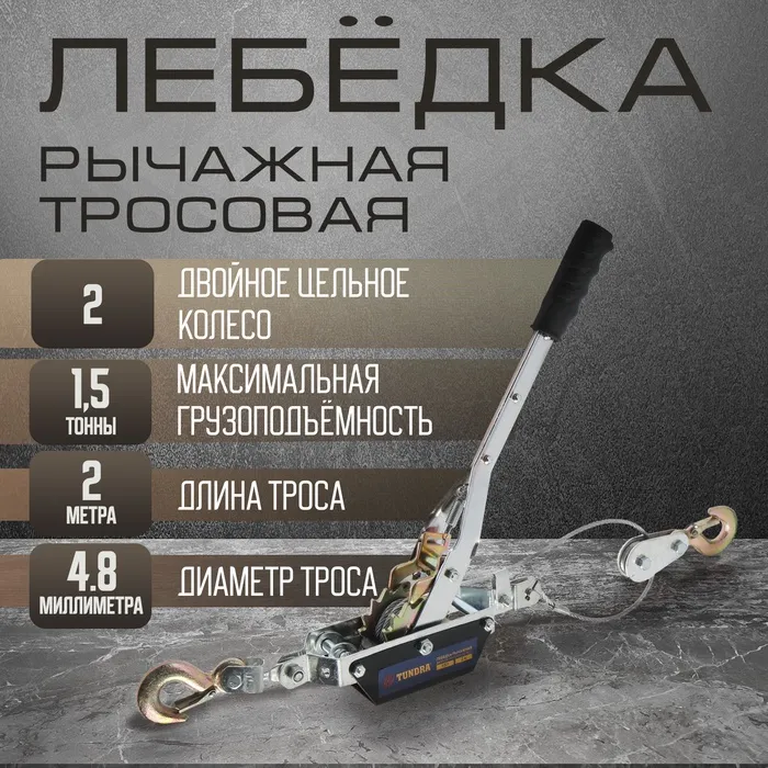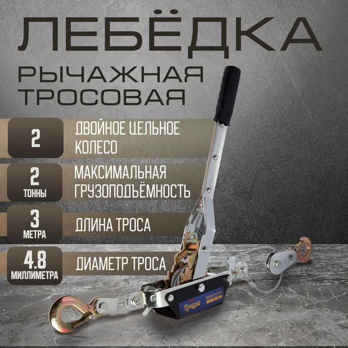Лебедка ручная барабанная тяговая ТУНДРА, 1000 кг, трос-ремень 10 метров — Характеристики