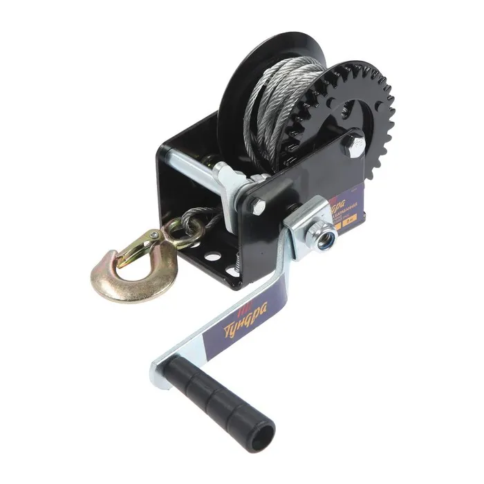 Лебедка ручная барабанная тяговая ТУНДРА, 800 кг, металлический трос 8 метров — Характеристики