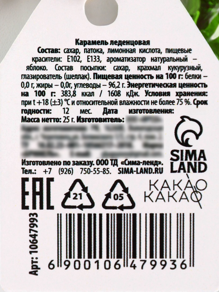 Леденец ёлочка с посыпкой «С новым годом» — Характеристики
