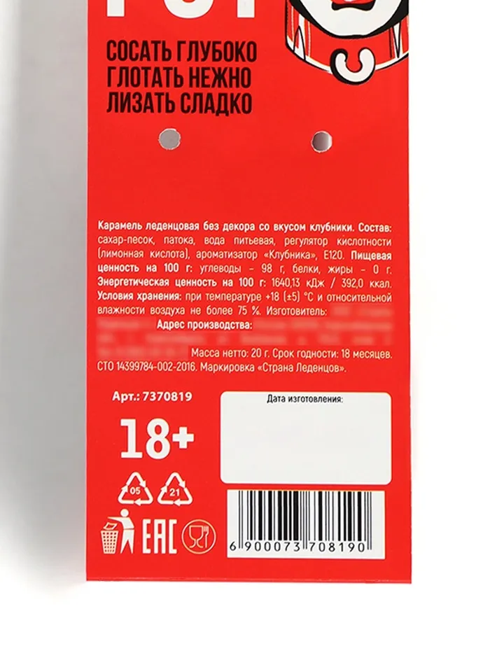 Леденец «Меньше слов, больше дела», вкус: клубника, 20 г. (18+) — Характеристики