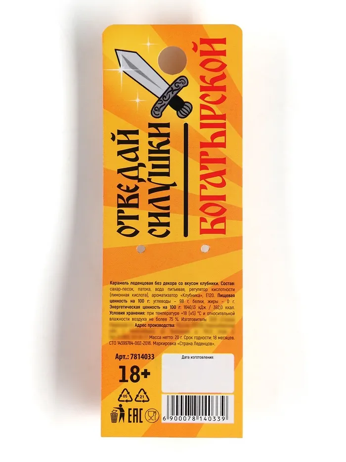 Леденец на палочке «Кладенец», вкус: клубника, 20 г. (18+) — Характеристики
