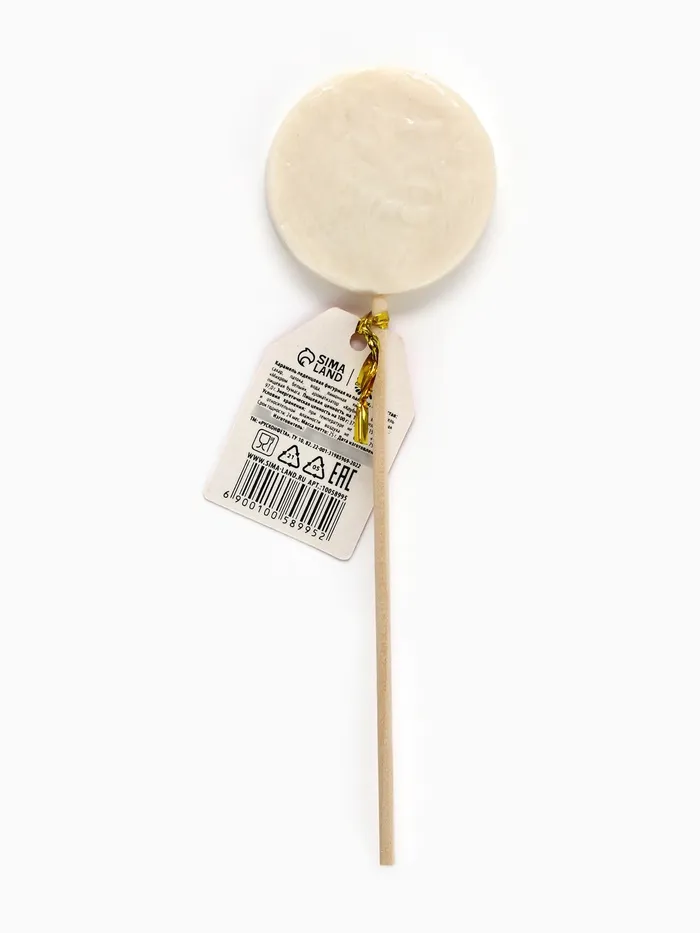 Состав: сахар, патока, вода, лимонная кислота, краситель "Михром белый", ароматизатор "Клубника", вафельная пищевая бумага.