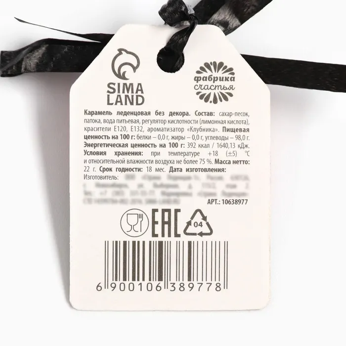 Состав: сахар-песок, патока, вода питьевая, регулятор кислотности (лимонная кислота), красители Е120, Е132, ароматизатор Клубника.