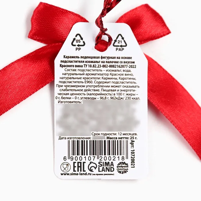 Леденец на палочке вино «Моей алкогольвице», вкус: красное вино, 25 г. — Характеристики