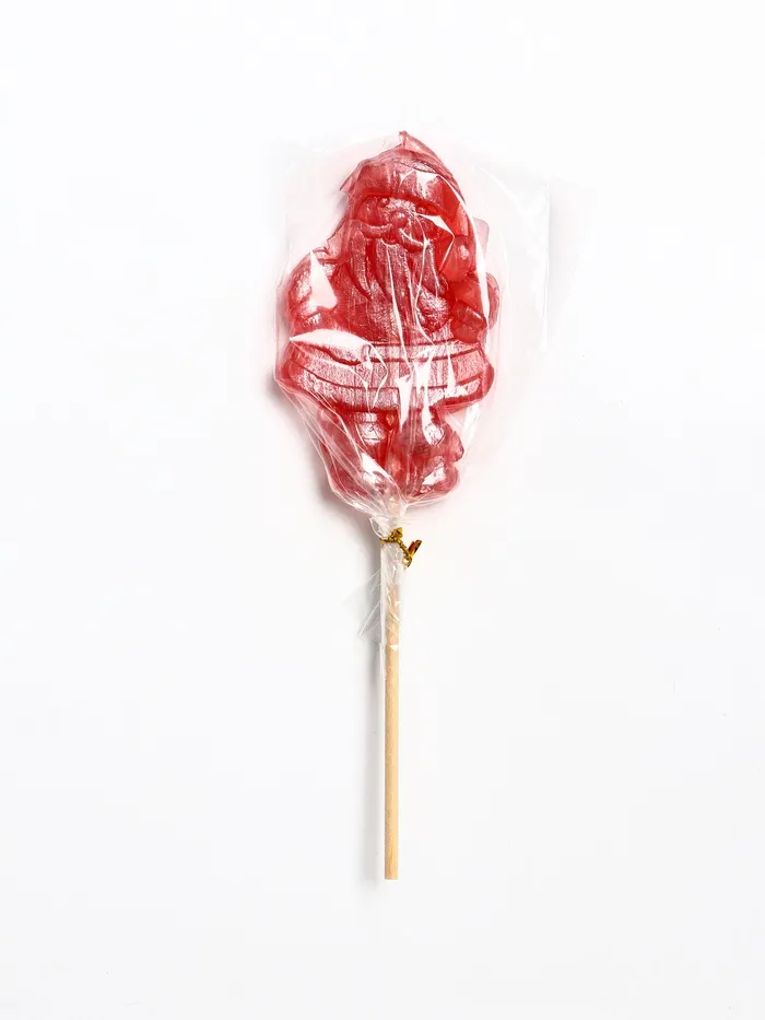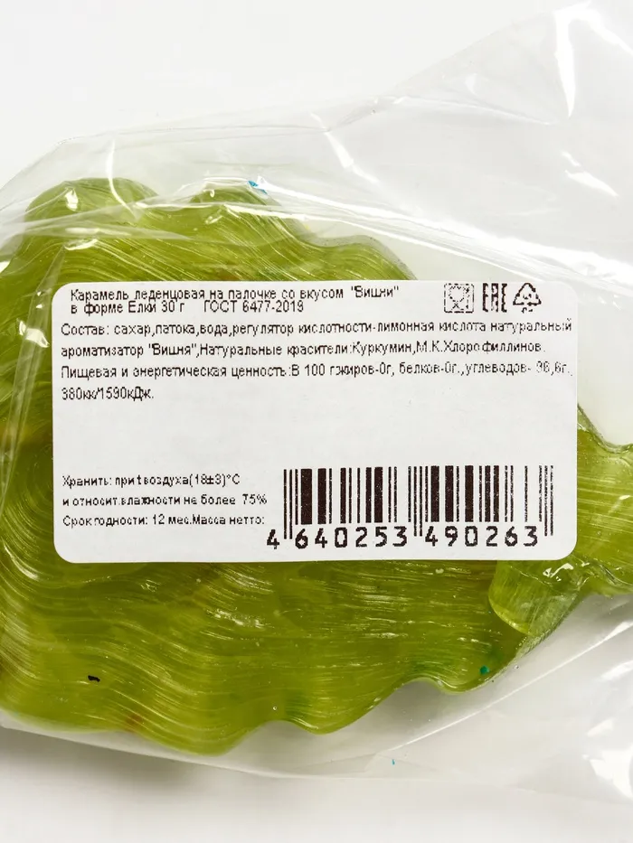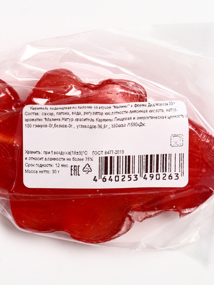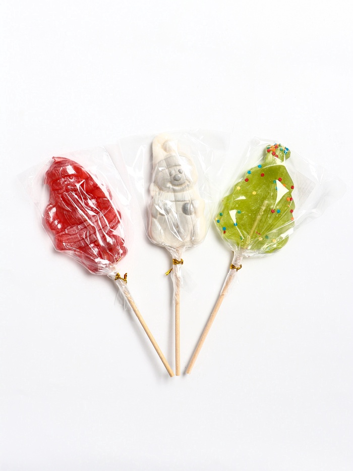 Новогодний фигурный леденец на палочке предлагает сочетание трёх фруктовых вкусов: малины, вишни и дыни. Такой десерт станет ярким акцентом праздничного стола и порадует как детей, так и взрослых.