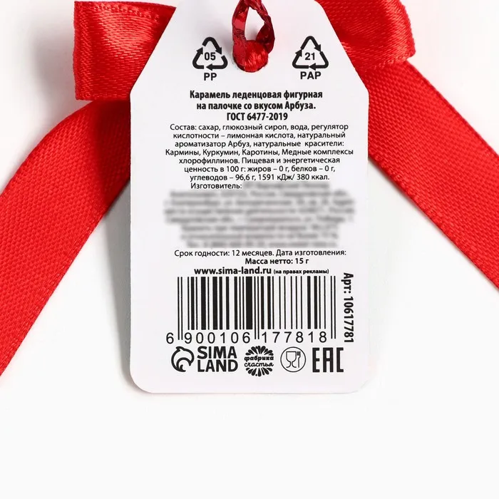 Леденец новогодний на палочке «Яркого года», со вкусом арбуза, 15 г — Характеристики