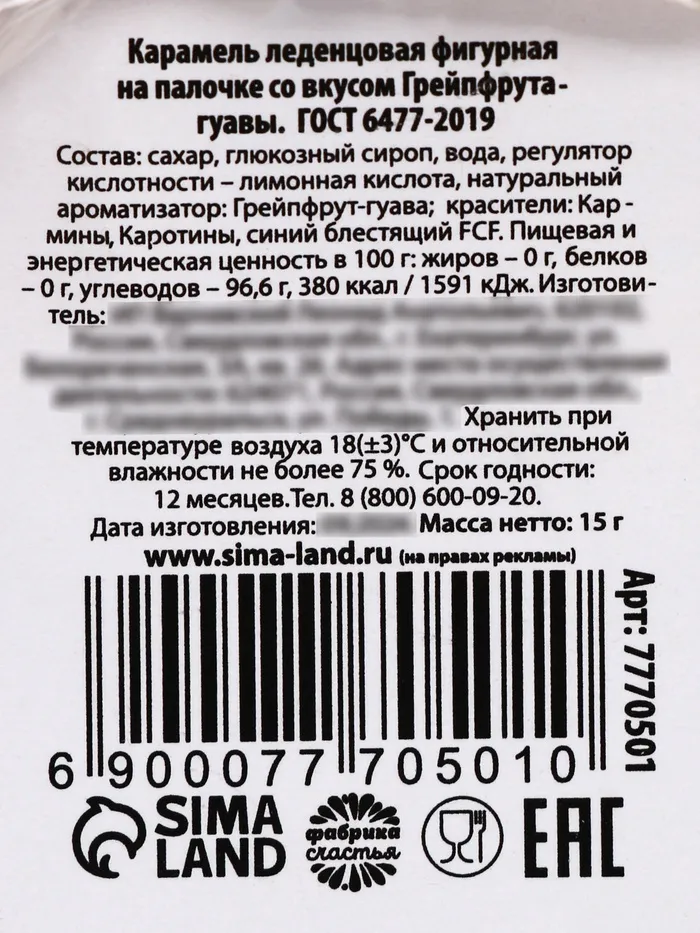 Леденец новогодний на палочке «Пять минут до счастья», вкус: грейпфрут-гуава, 15 г — Характеристики