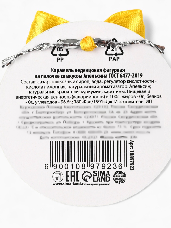 Леденец новогодний «На удачу», в форме подковы, 24 г — Характеристики