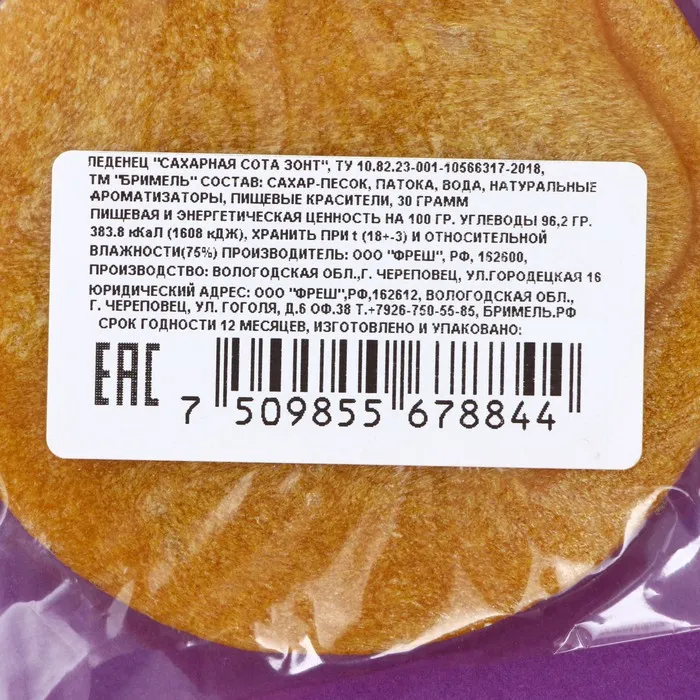 Леденец «Сахарные соты»: игра в кальмара — это сладкое угощение, вдохновленное популярным корейским сериалом «Игра в кальмара». Упаковка весом 30 г предлагает уникальный вкус и интересный дизайн, который стал настоящим хитом среди поклонников сериала.