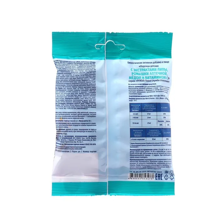 Леденцы детские с экстрактами липы, ромашки аптечной, мёдом и Витамином С.