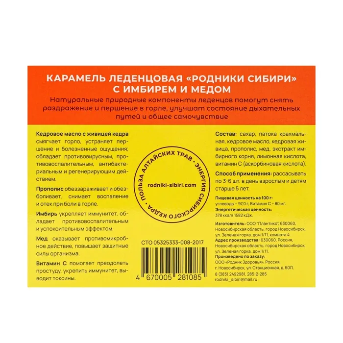 Сторонники здорового образа жизни, ценящие быструю и активную помощь, даже в период распространения гриппа и простуды легче преодолевают все симптомы болезней или вовсе избегают заболевания с нашими леденцами, созданными специально для людей, предпочитающих помогать своему организму исключительно натуральными средствами. Противовирусные и антисептические компоненты подавляют рост болезнетворных бактерий. Укрепляющие иммунитет свойства леденцов настраивают Ваш организм на самостоятельное успешное преодоление простуды. Уменьшают боль в горле, облегчают дыхание, смягчают воспаленные слизистые оболочки непосредственно в процессе рассасывания леденца. Леденцы отличаются уникальным качеством: они начинают действовать как мини-ингалятор незамедлительно для облегчения кашля и вывода мокроты. Мягкий седативный эффект леденцов успокаивает возбужденную нервную систему, снимает раздражительность и позволяет Вашему организму сконцентрироваться на скорейшем выздоровлении. Мягкость вкуса и натуральный состав леденцов оценят по достоинству все люди, предпочитающие укреплять здоровье природными средствами. Противовирусные и антисептические компоненты леденцов приостанавливают рост числа бактерий на слизистых оболочках ротовой полости и носоглотки. Противовоспалительное и отхаркивающее действие леденцов способствует легкому освобождению от насморка и мокроты.