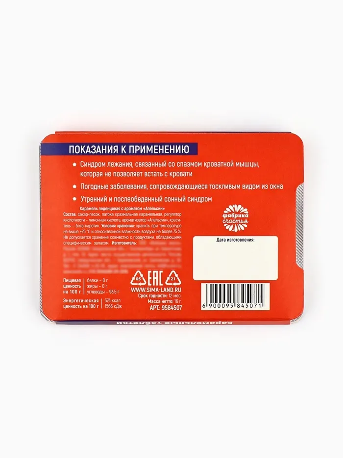 Состав: сахар, патока крахмальная, кислота лимонная, ароматизатор, идентичный натуральному, пищевой краситель.