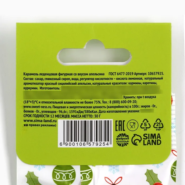 Леденцы в пакете с европодвесом «Гуся-лапуся», вкус апельсин, 30 г. — Характеристики