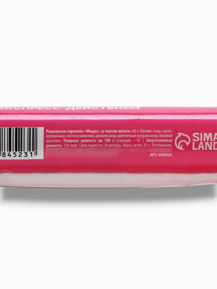 Состав: сахар, патока крахмальная, кислота лимонная, ароматизатор, идентичный натуральному, пищевой краситель.
