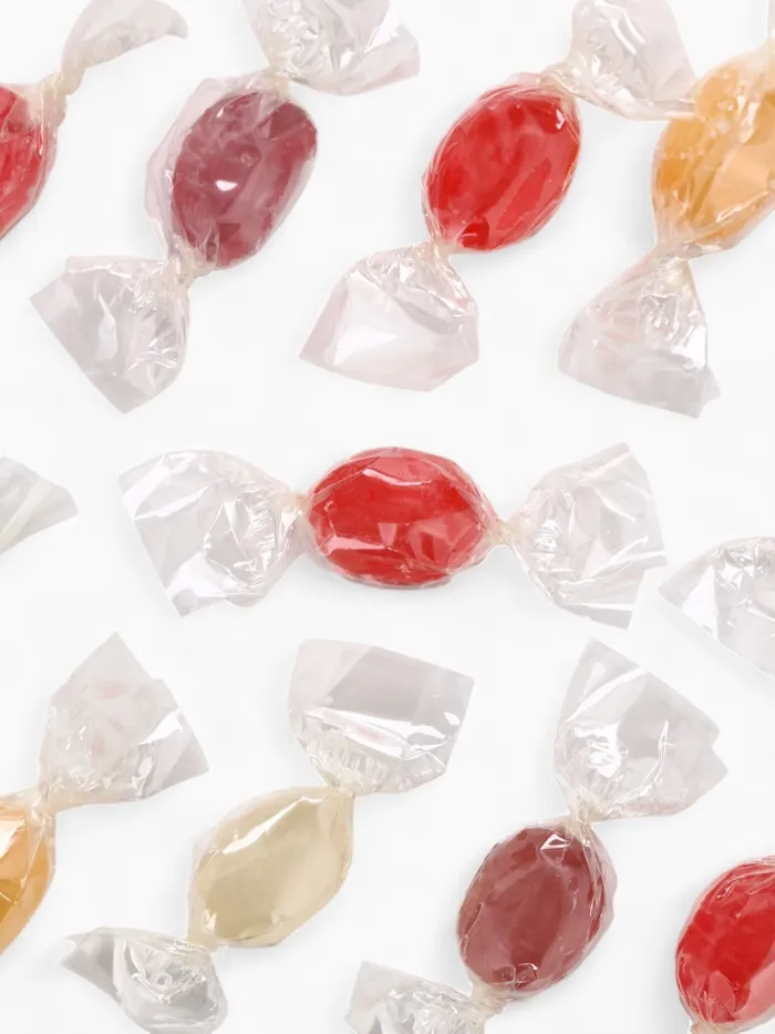 Состав: сахар, сироп мальтозный, регулятор кислотности - кислота лимонная, ароматизаторы (апельсин, дыня, лимон-лайм, тропичаские фрукты, лесные ягоды), красители пищевые натуральные (куркумин, кармин, экстракт паприки, медные комплексы хлорофиллов, антоцианы)