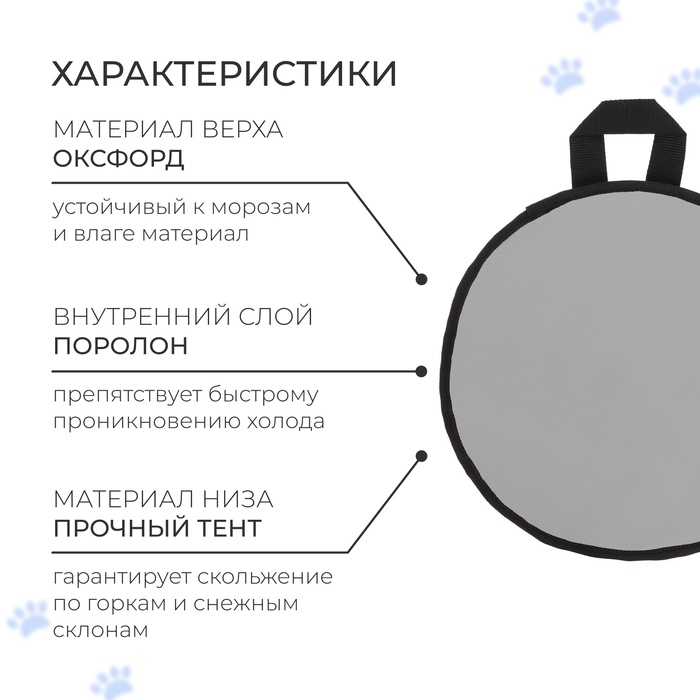 Мягкая ледянка предназначена для активного зимнего отдыха. Верх выполнен из материала оксфорд. Наполнитель внутри ледянки обеспечивает защиту от холода. Дно сделано из прочного тентового материала, который гарантирует скольжение по горкам и снежным склонам.