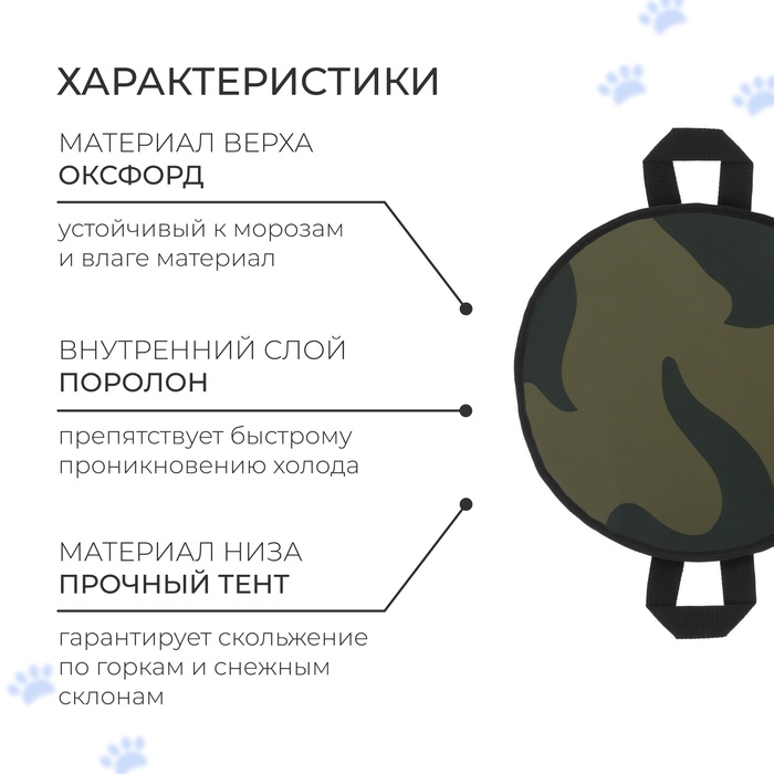 Мягкая ледянка предназначена для активного зимнего отдыха. Верх выполнен из материала оксфорд. Наполнитель внутри ледянки обеспечивает защиту от холода. Дно сделано из прочного тентового материала, который гарантирует скольжение по горкам и снежным склонам.