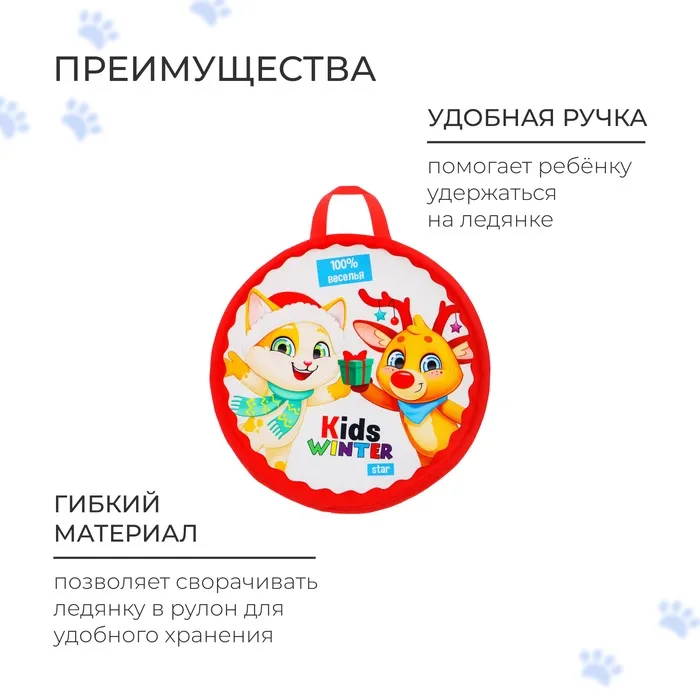 Мягкая ледянка предназначена для катания с ледяных, снежных, металлических и деревянных горок в зимнее время.