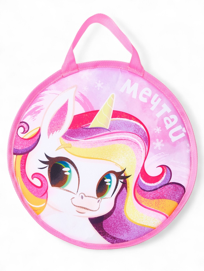 - Яркий дизайн – принт с единорогом понравится девочкам и сделает зимние забавы еще интереснее.