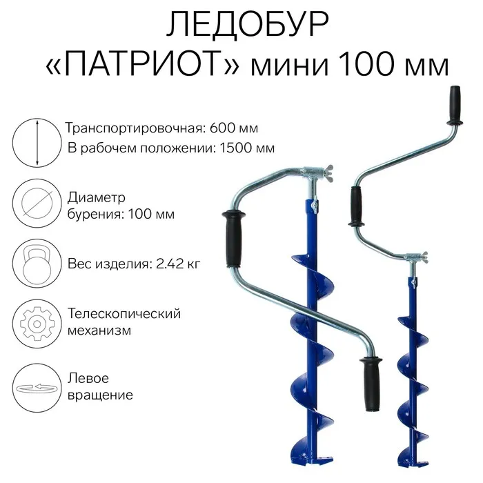 Ледобур «Патриот» телескопический-мини 100 мм, ЛВ — Характеристики