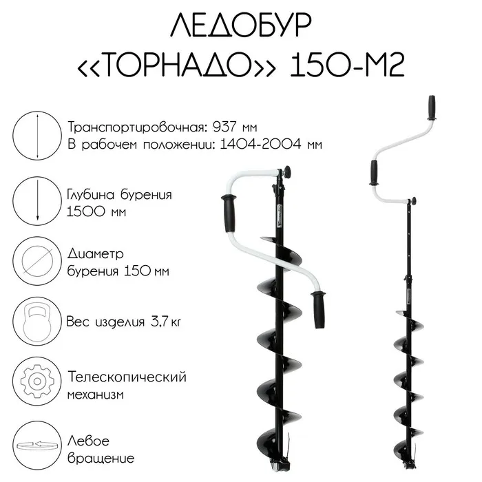 Ледобур "Торнадо" 150 М2, левое вращение, без чехла — Характеристики