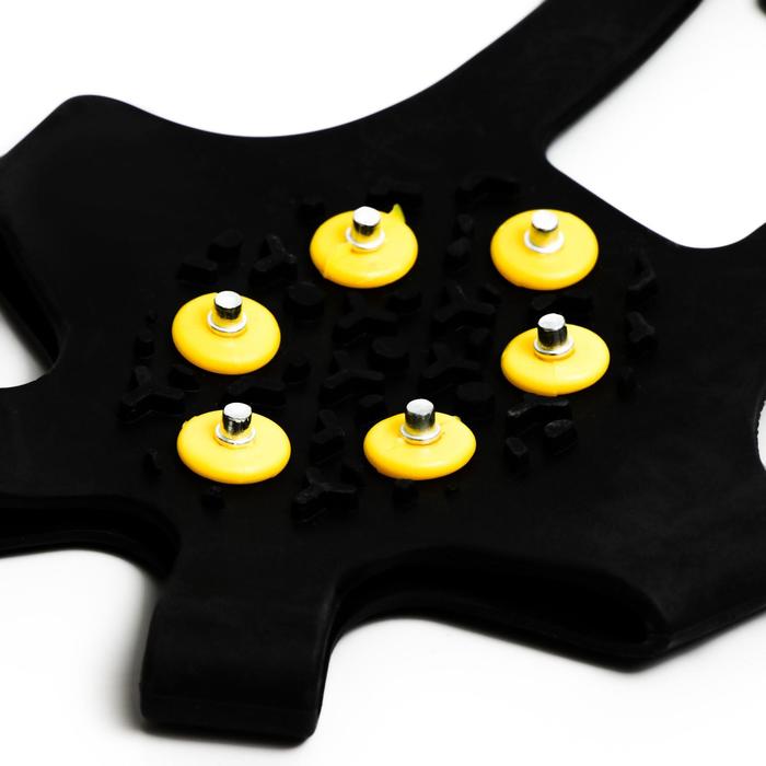 Широкая перемычка на пятке с 4 шипами предотвращает скольжение при касании земли, не перекручивается при ходьбе.