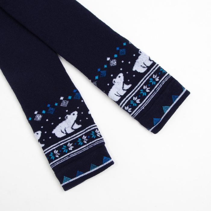 Леггинсы детские махровые «Орнамент с медведем», цвет тёмно-синий, рост 104-110 — Характеристики
