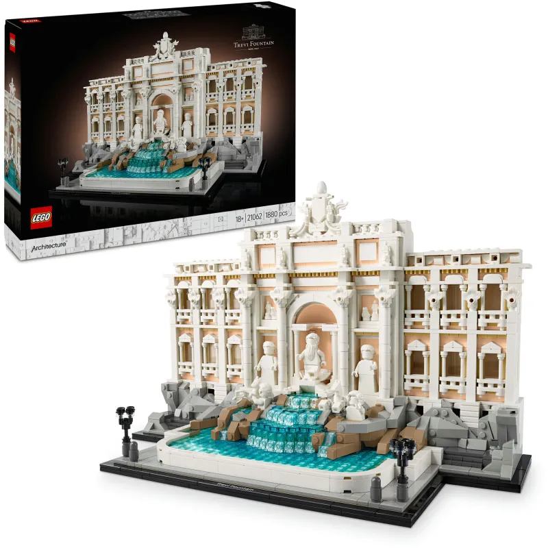 Любители итальянских достопримечательностей, истории и путешествий будут в восторге от набора LEGO® Architecture Тревин фонтан (21062), из которого можно собрать коллекционную модель знаменитой римской достопримечательности. Этот набор станет ностальгическим подарком на день рождения или сюрпризом, позволяющим погрузиться в историю и мифологию фонтана. Воссоздайте фонтан с миниатюрными скульптурами и изваяниями. Готовая модель передает атмосферу солнечного дня у фонтана.