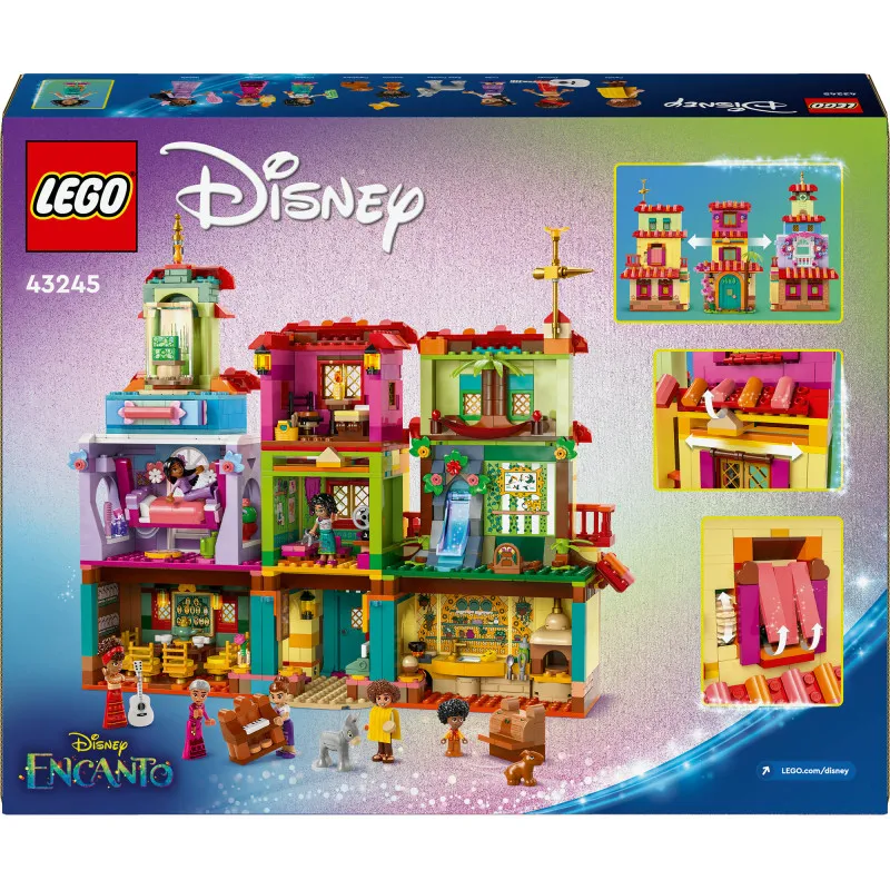 Этот увлекательный набор станет отличным подарком, в который входят минифигурки Мирабель, Абелы, Изабелы, Долорес, Луизы и Камила, а также микро-фигурка Антонио и 2 фигурки животных. Дом можно объединить с другими наборами LEGO Disney (продаются отдельно), чтобы расширить игровые возможности детей.