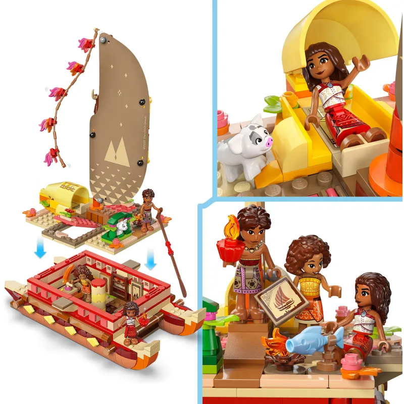 Подарите радость детям от 6 лет и старше с увлекательным набором LEGO® ǀ Disney Путешествие на каноэ Ваяны (43270). Этот игровой набор вдохновляет на творческие игры и включает катамаран с декоративным парусом, инструментами для отслеживания ветра, съемной палубой и зоной отдыха под ней, а также небольшой костровой установкой и спальным местом на палубе. В комплекте также множество аксессуаров и мини-куклы Ваяны и Моаны, а также мини-фигурка поросенка Пуа из LEGO ǀ Disney.
