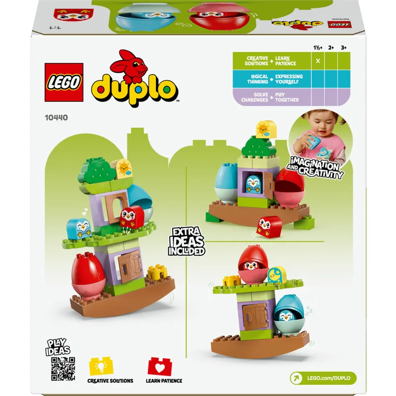 Игрушечный набор для дошкольников учит решению проблем и терпению, когда дети учатся складывать части и удерживать дерево в равновесии. Маленькие любители животных могут добавлять блоки для поддержания равновесия дерева или сосредоточиться на играх в домике на дереве с фигурками сов LEGO® DUPLO®.