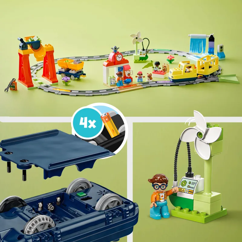 С бесплатным приложением LEGO® DUPLO® Interactive Trains дети могут записывать свои звуки для поездки на поезде и управлять локомотивом с помощью мобильного устройства. Вся семья получит новые идеи для строительства из приложения.