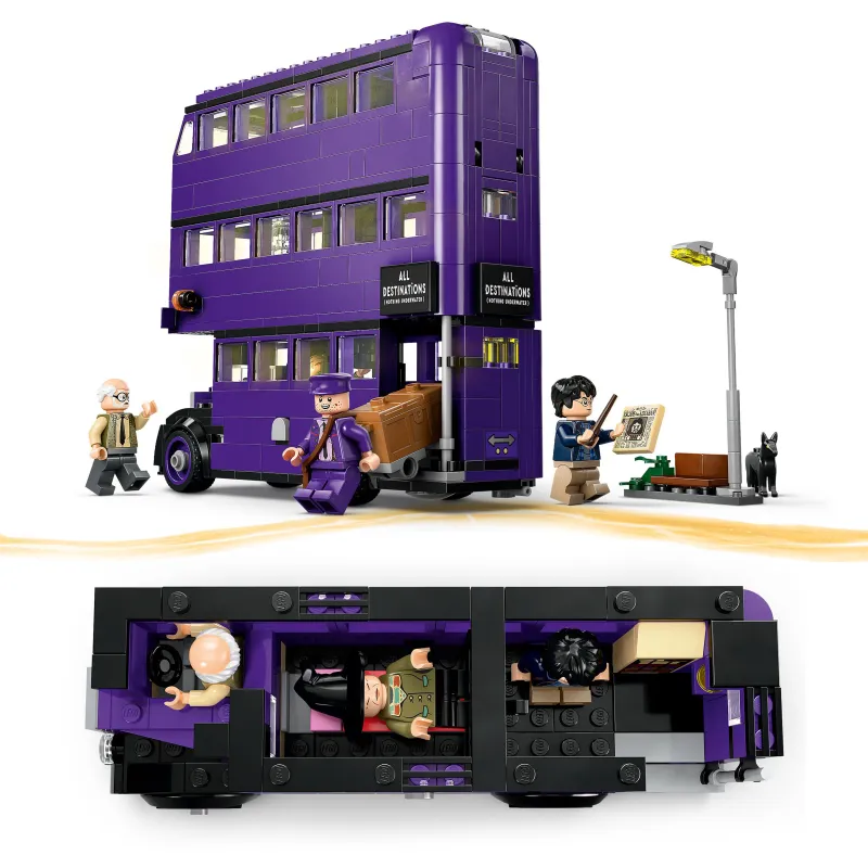 Очаровательный набор LEGO® Harry Potter™ «Приключение на Ночном автобусе» (76446) вдохновляет детей на захватывающие приключения. Этот набор станет отличным подарком на день рождения или сюрпризом для детей старше 8 лет и поклонников волшебного мира. Модель автобуса является самой детализированной версией трехэтажного Ночного автобуса. Съемные верхние этажи позволяют с легкостью заглянуть внутрь, где вас ждут подвижные кровати и качающаяся люстра, оживляя игру.
