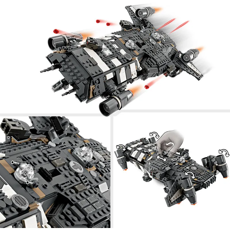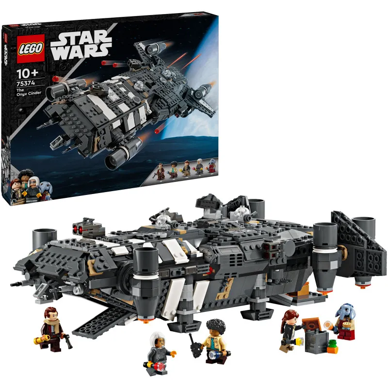 Дети могут ощутить себя героями, погружаясь в мир историй Star Wars: Skeleton Crew с LEGO версией Оникс Синдер (75374). В этой коллекционной модели звездолета LEGO Star Wars™ есть вращающиеся двигатели для взлета и посадки, 2 бластера, 2 вращающиеся турели, каждая с 2 бластерами, и захватный коготь. В корабле есть место для 5 минифигурок LEGO Star Wars (Джодин в кабине, а Вим, Ферн, КБ и Нил в пассажирском отсеке), а также место для хранения 4 сборных фонариков и других предметов. Также включены обеденный стол и кровать, а среди аксессуаров есть фрукты и рация, которые вдохновляют на творческую игру.