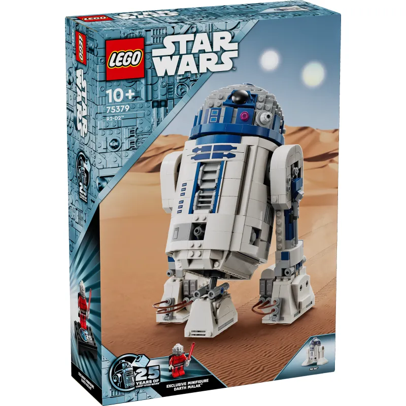 Постройте впечатляющую модель дроида R2-D2 из LEGO. Завершите постройку подставкой, табличкой с информацией о R2-D2 и минифигуркой Дарта Малак с мечом в честь 25-летия коллекции Star Wars.