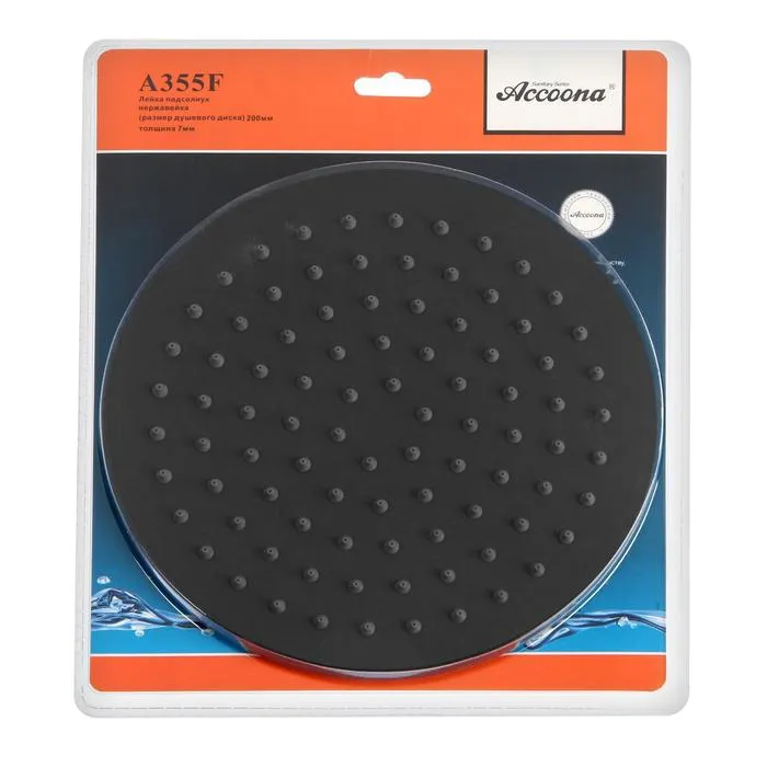 Лейка для душа Accoona А355F, тропическая, d=20 см, круг, нерж. сталь, черная — Характеристики