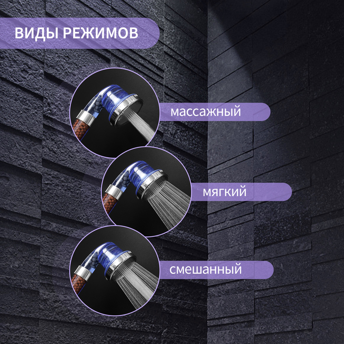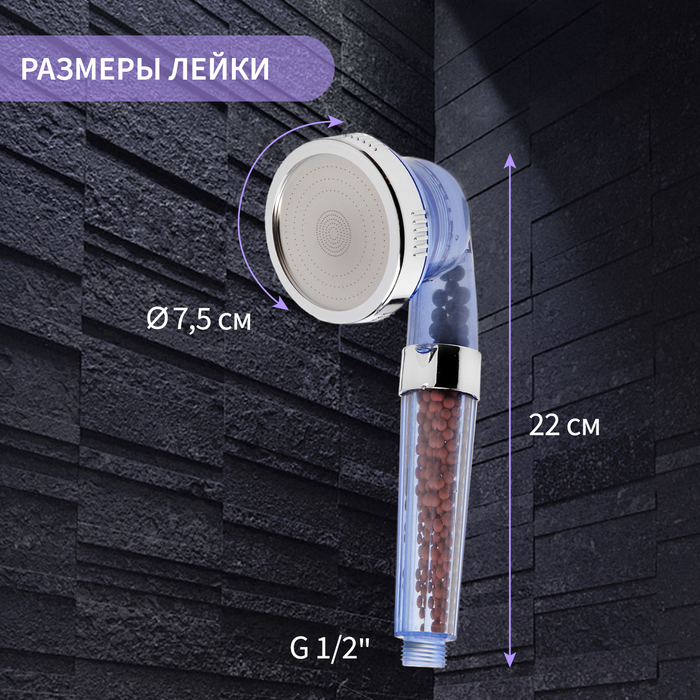 Лейка для душа ZEIN Z0112, пластик/нержавейка, 3 режима, микроскопические точки, прозрачная — Характеристики