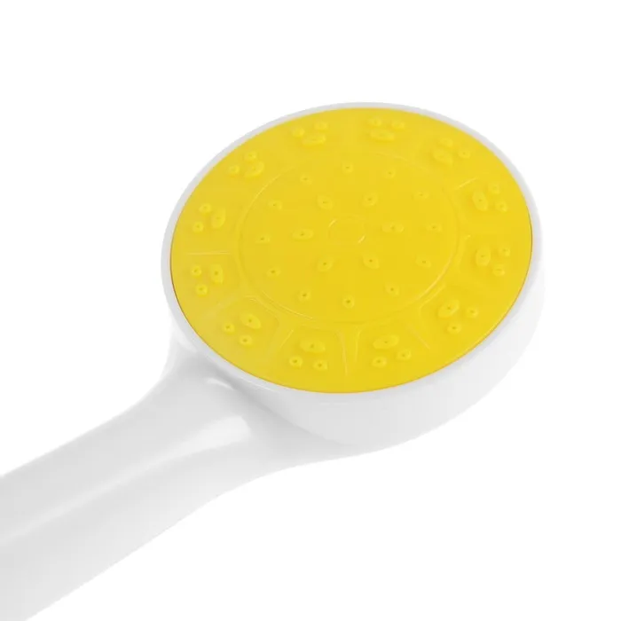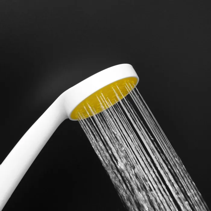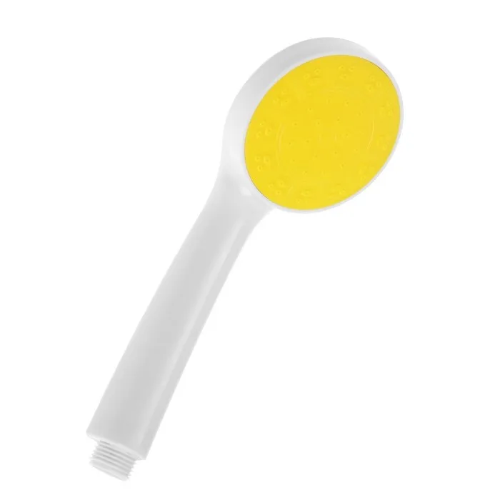 Душевая лейка ZEIN Z0206 выполнена из прочного пластика и представлена в стильном белом цвете с яркой желтой вставкой, что придаёт ей современный и жизнеутверждающий вид.