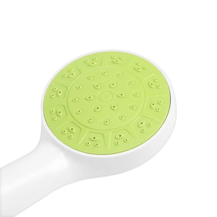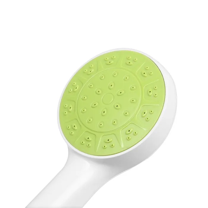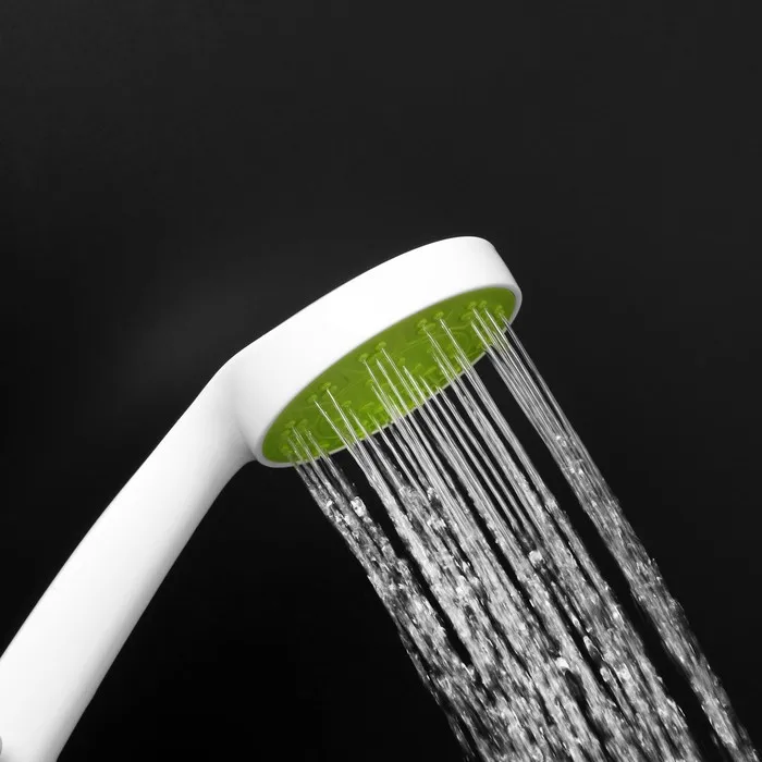 Душевая лейка ZEIN Z0207 выполнена из прочного пластика и представлена в стильном белом цвете с зеленой вставкой, что придаёт ей свежий и современный вид.