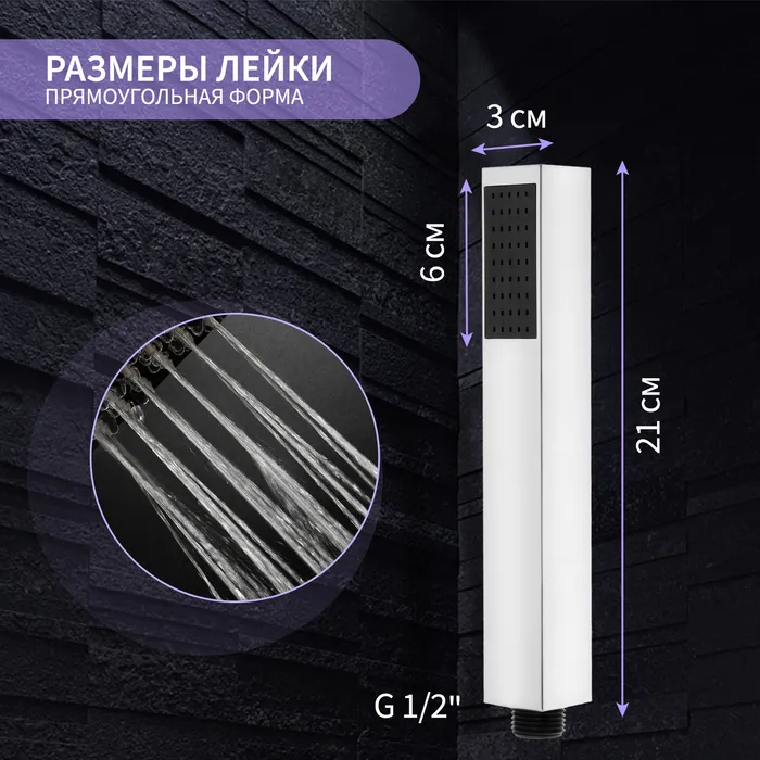 Лейка имеет один режим струи, обеспечивая стабильный и комфортный поток воды. Современный дизайн и легкий вес делают эту лейку удобной в использовании и простотой в установке, добавляя стильный акцент в интерьер вашей ванной комнаты.
