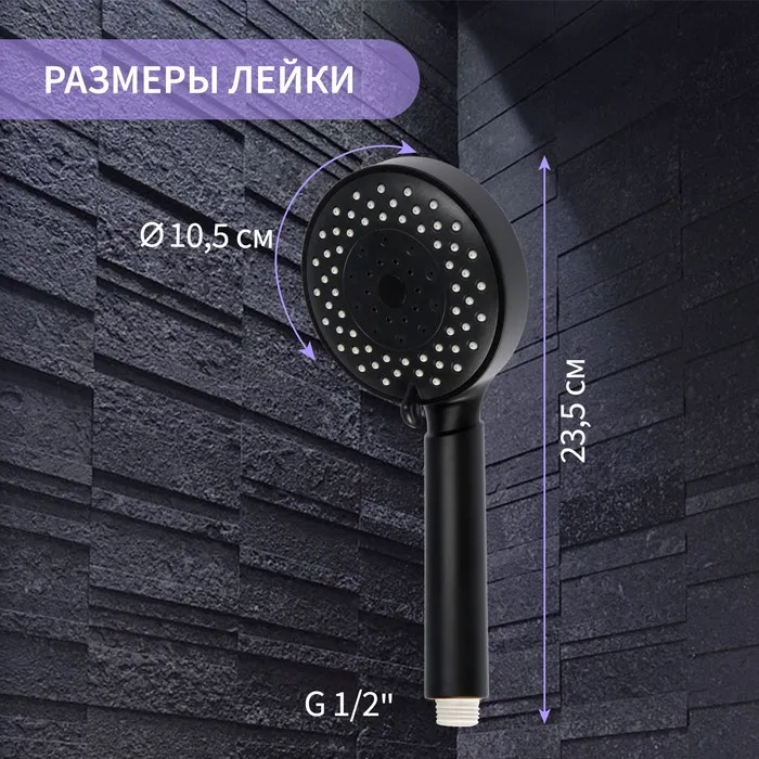 Лейка имеет три режима работы, позволяя выбрать оптимальный поток воды для комфортного душа. Средний размер лейки обеспечивает удобство в использовании и стильное дополнение к интерьеру вашей ванной комнаты.