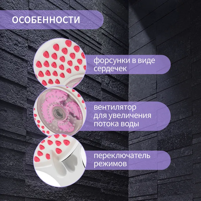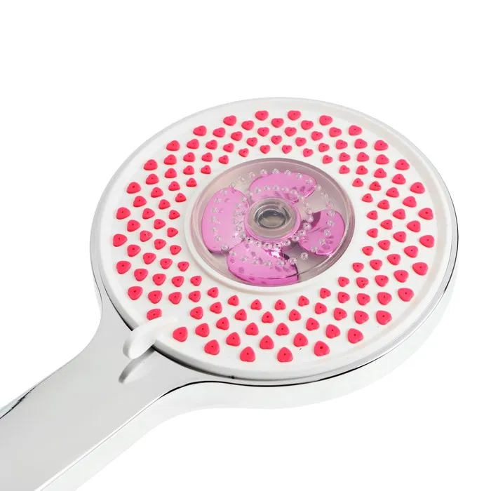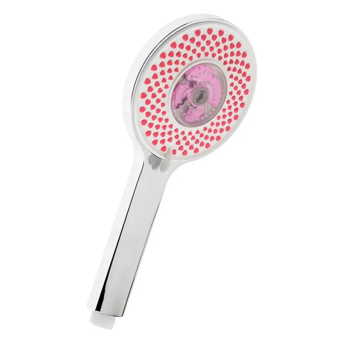 Лейка для душа ZEIN Z3546 с диаметром 120 мм имеет 3 режима струи и уникальный дизайн с розовыми форсунками в виде сердечек.