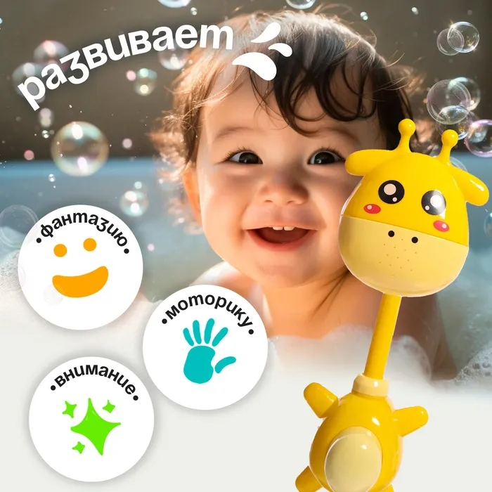 С игрушкой в форме жирафа купание становится больше, чем просто водной процедурой. Дети учатся взаимодействовать с водой, развивают мелкую моторику и воображение. Игрушка привлекает внимание своим ярким дизайном и простотой использования.